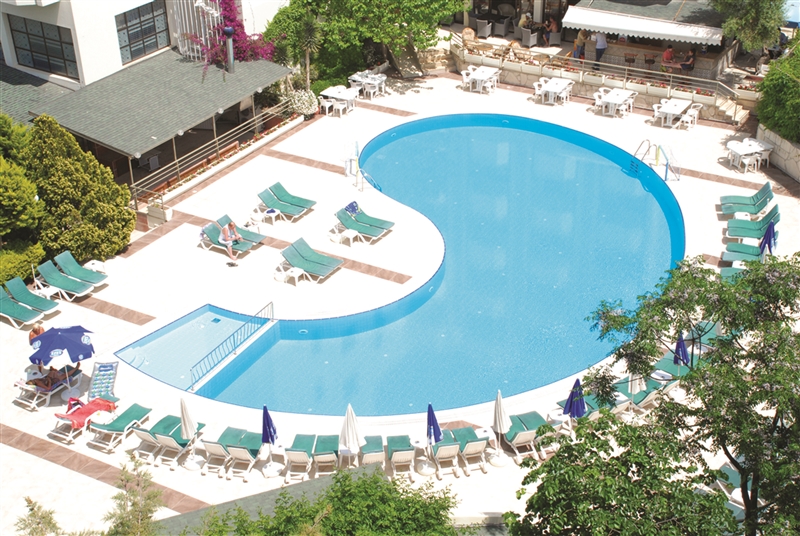 Güneşlenme terasına sahip olan açık yüzme havuzu, misafirlere güneşin ve suyun tadını doyasıya çıkarma imkanı veriyor.